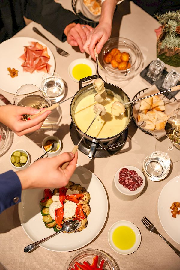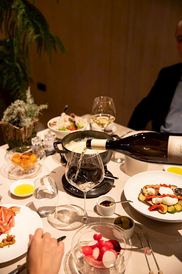 Cheese fondue is more than just a dish—it's a ritual that brings people together, perfect for a romantic evening or a convivial moment with friends and family. Savor our fondue, made with the finest local cheeses and paired with carefully selected accompaniments such as grilled vegetables, traditional cured meats, and artisanal bread. Each bite is a journey through the flavors of the Dolomites, a warm and social experience celebrating Alpine tradition and the joy of togetherness.