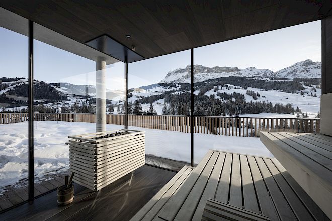 Welcome to our spa located on the top floor of Badia Hill, an oasis of tranquility with a spectacular view of the Dolomites. It's the perfect place to relax with a good book, challenge a friend to a game of chess, take a refreshing swim, or enjoy an aufguss. Prepare to immerse yourself in a unique wellness experience where every detail is designed for maximum relaxation and pleasure.